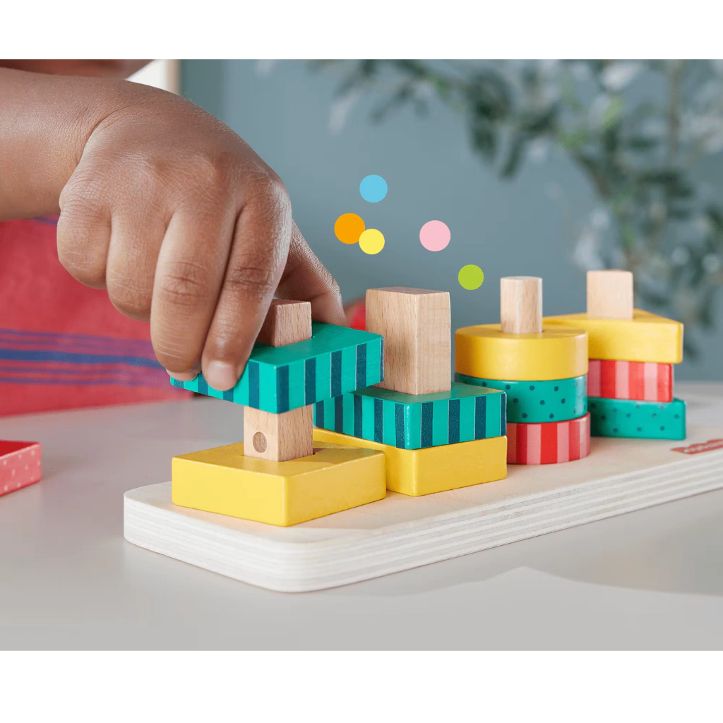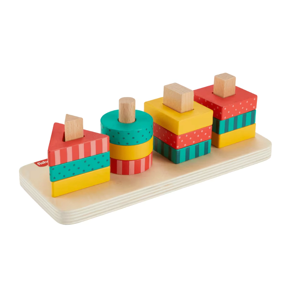El apilador de formas de madera de Fisher-Price presenta coloridos triángulos, círculos, rectángulos y cuadrados de madera para que los pequeños clasifiquen y apilen en la base. Hecho con madera de bosques bien gestionados con certificación FSC, este juguete apilable presenta muchas actividades de motricidad fina y es una excelente manera de introducir a tu niño pequeño a los colores, las formas, el conteo y más.