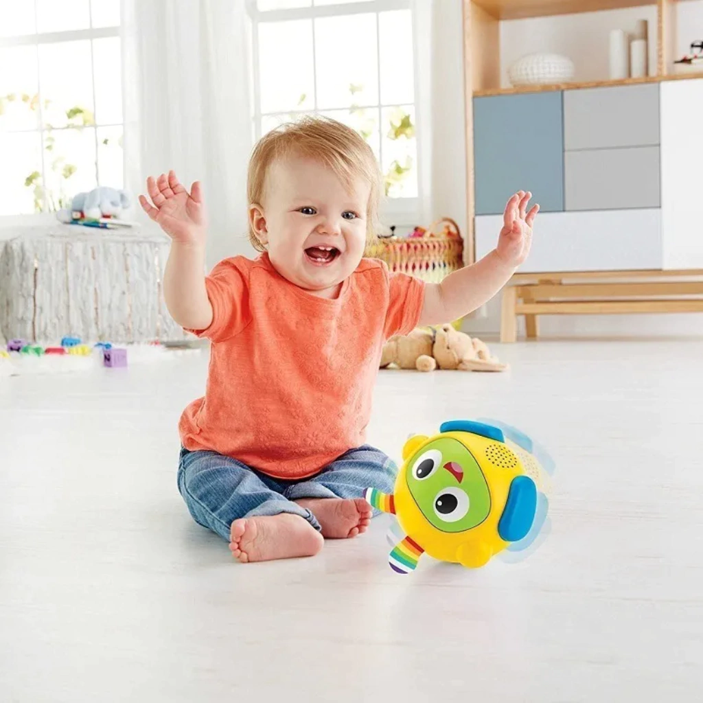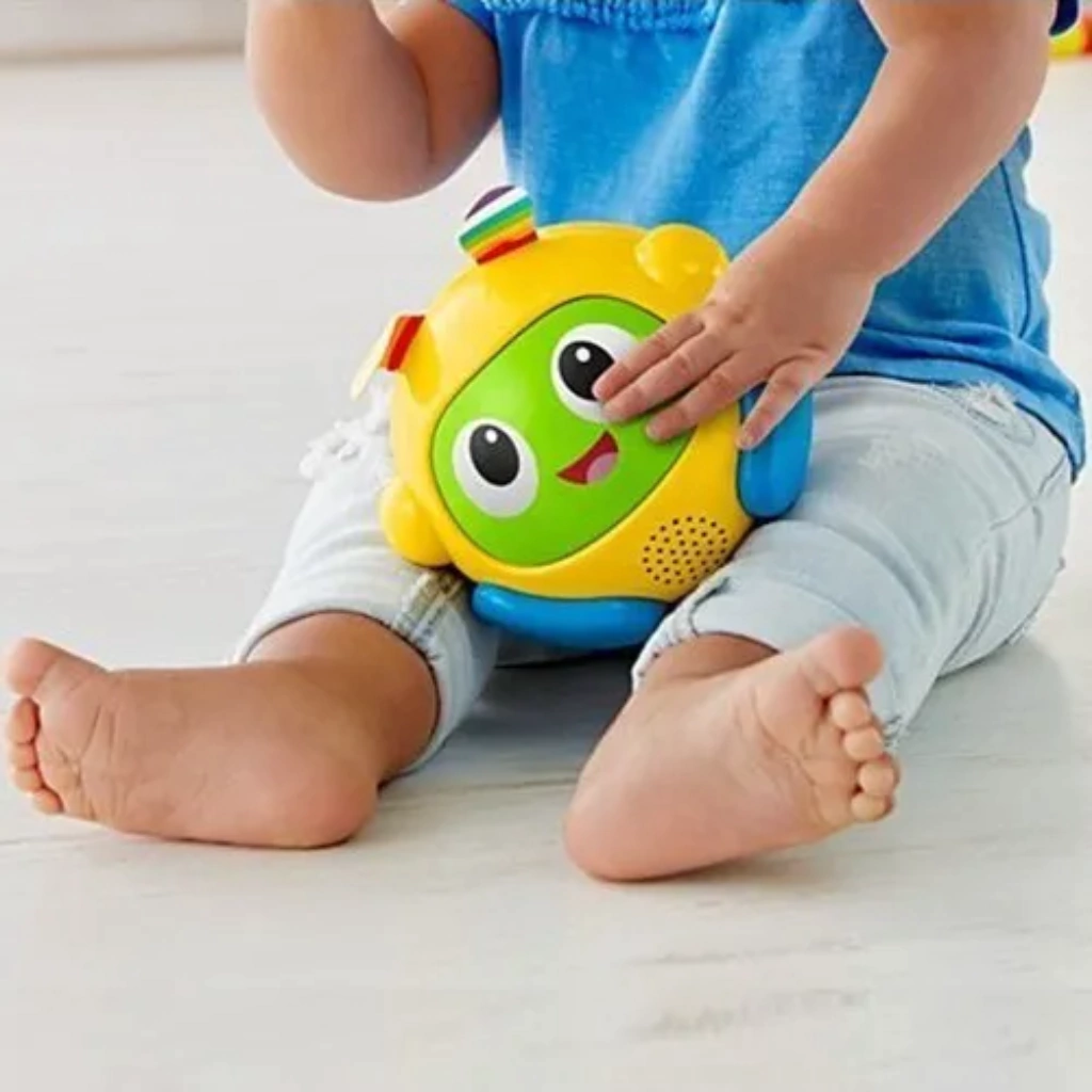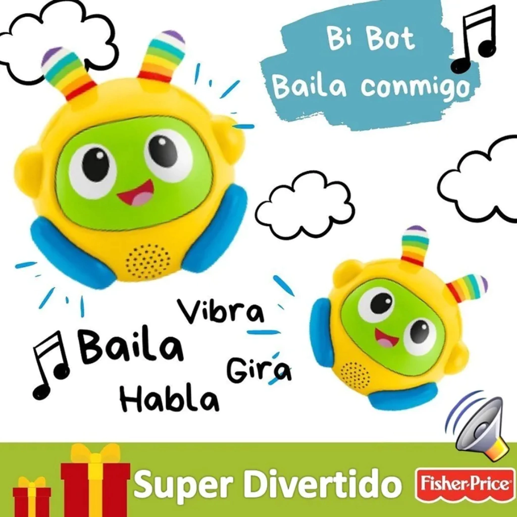 ¡El bebé gateará con este amigo tambaleante bailarín con sus coloridas luces y su divertida música!¡Es hora de rockear bebé! Con sus luces coloridas, divertida música e increíbles frases, Bi Bot Baila Conmigo ¡hace que tu bebé baile al ritmo, aquí, allá o donde sea que vaya! Los pequeños amarán tener una pelota que rueda y que ellos puedan gatear detrás de ella con su adorable amigo tambaleante. ¡Solo presiona su cara para hacer girar a Bi Bot por todo el piso!