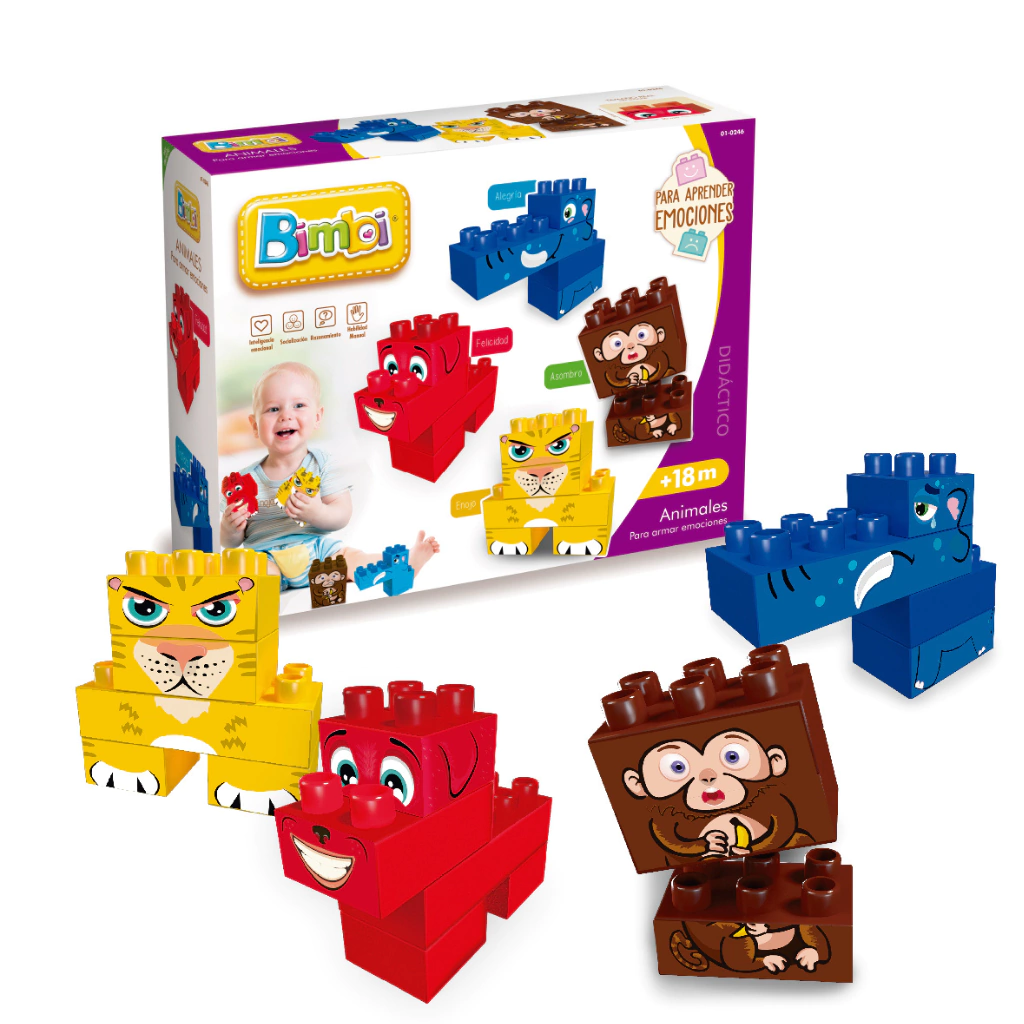 Bloques grandes para armar divertidos animales y descubrir las emociones. Juguete NO TÓXICO, fabricado sin ftalatos ni colorantes. Las fotos son de carácter ilustrativo. Los colores de las piezas pueden variar.