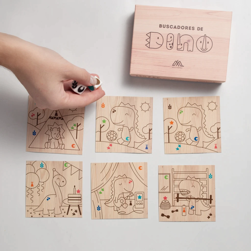 ¡Atención! En este juego, un grupo de amigos aventureros salen a la búsqueda de dinos. Armados con fantasía y mucha alegría se sumergen en un mundo de colores.Se tiran los dos dados y todos los jugadores deben buscar la tarjeta que cumpla con las condiciones que muestran los dados. El que encuentra primero la tarjeta correcta, se la queda. El que tiene más tarjetas al final del juego, gana.Ideal para compartir un momento con los más pequeños de la casa. ¡Sumergite en un mundo de aventura!