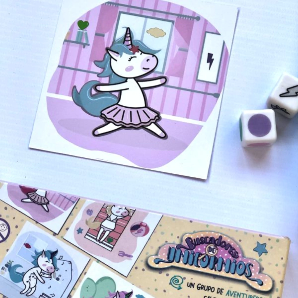 ¿Quién dijo que los unicornios no existen? ¡Tan solo era cuestión de buscarlos!Sumergite en un mundo de colores y magia donde encontrar unicornios es parte de la aventura.Las reglas son muy simples: se tiran los dados y según el color y símbolo que salga hay que buscar rapidamente el unicornio que cumpla con esa premisa en las distintas tarjetas. El primero en encontrar 5 unicornios gana la partida.Es un juego muy dinámico, de agudeza visual, que va a divertir tanto a los más peques como al resto de la familia.