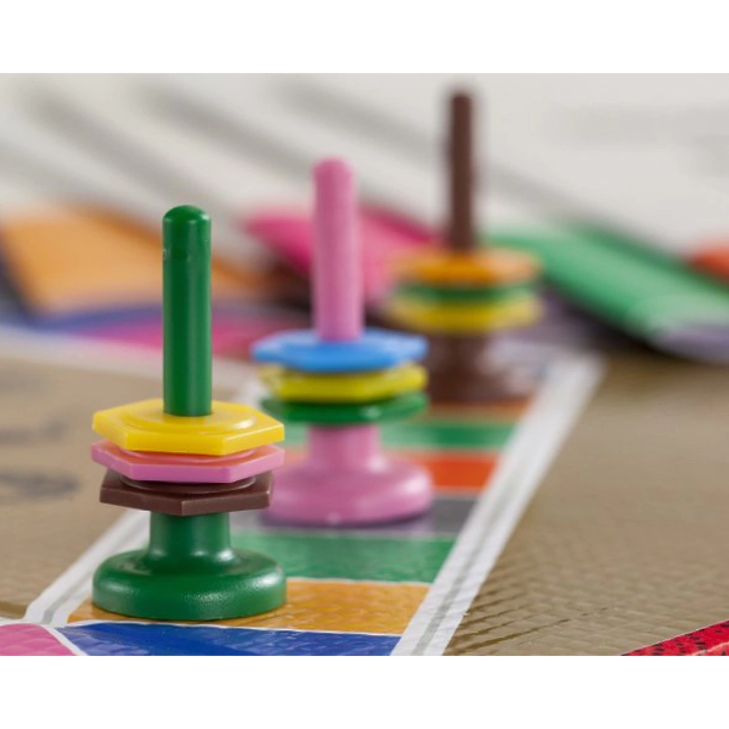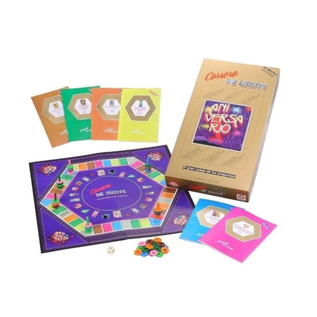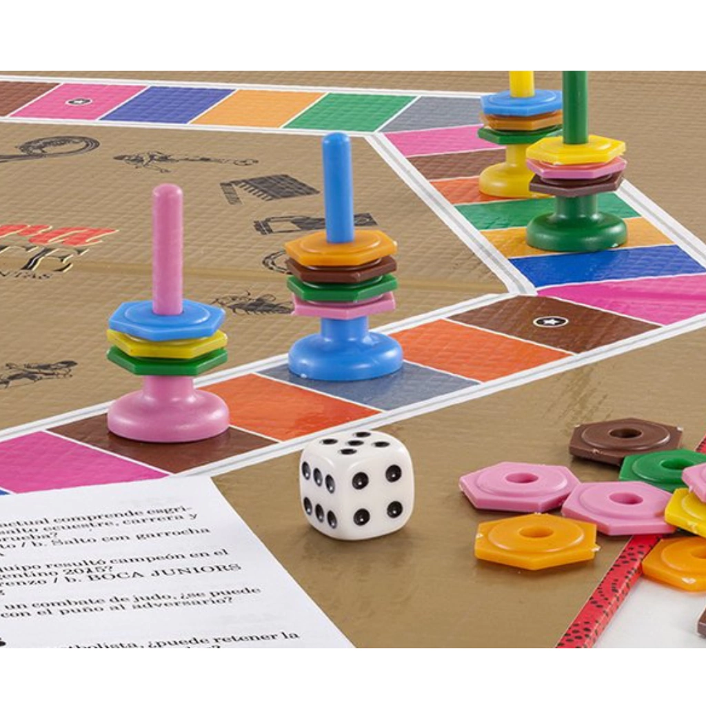 Contiene: 1 tablero, 6 cuadernillos con 3888 preguntas y sus respuestas, 1 dado, 6 clavijas, 36 fichas-premio hexagonales.