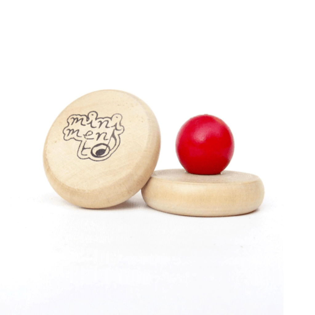 Dos piezas iguales. Pastillas cilíndricas de madera con una bolilla de madera adherida que funciona como agarre. Modos de ejecución: se toma una pieza con cada mano y se chocan una contra la otra las caras lisas del instrumento. Las castañuelas no están unidas (como en el instrumento tradicional) para facilitar y medir la ejecución