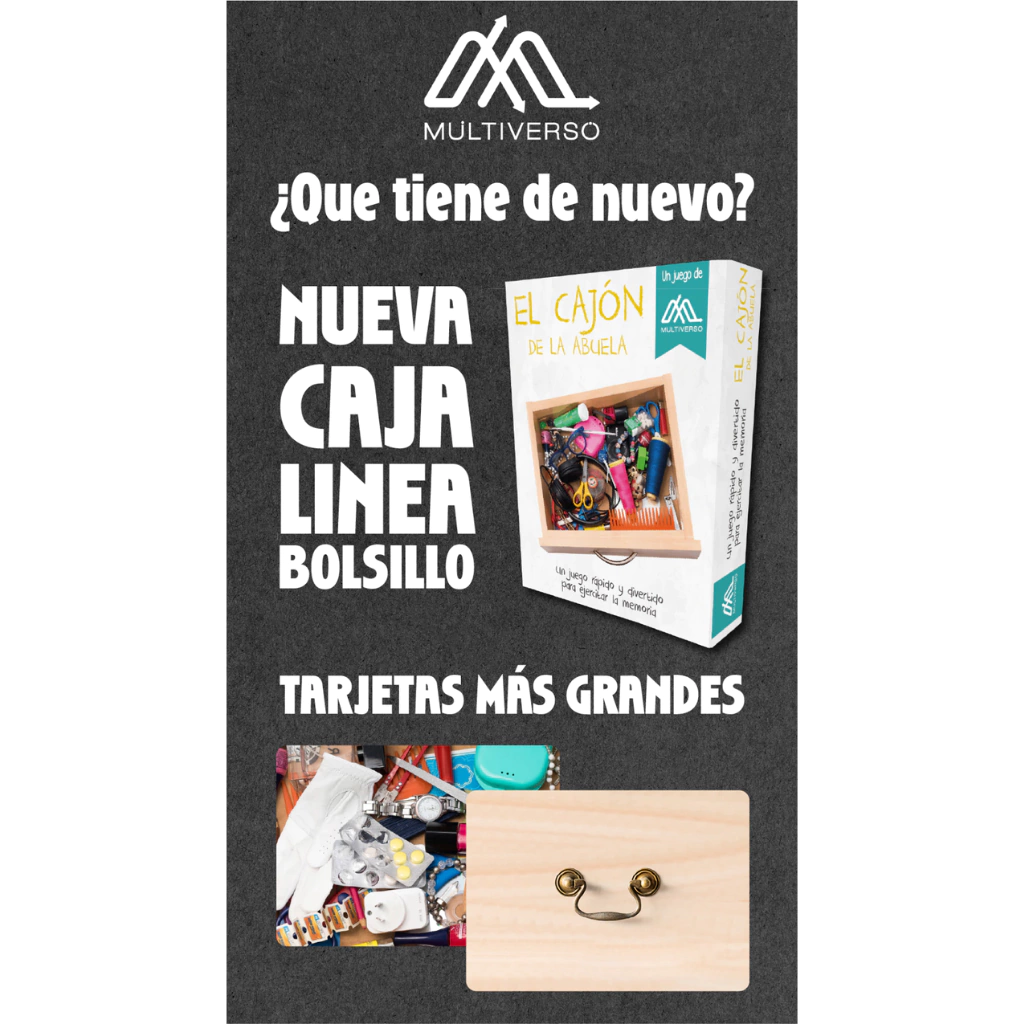 ¿Quien no tiene un cajon asi en su casa? Hay cajones para guardar cubiertos.Hay cajones para guardar ropa interior.Y hay cajones para guardar todo el resto….¡este juego es el desafío de memoria !El juego consiste en observar el cajón por un tiempo y escribir la mayor cantidad de objetos y los colores principales que recuerden.¿Piensan qué es fácil?¡para desafiarse solo o en grupos!