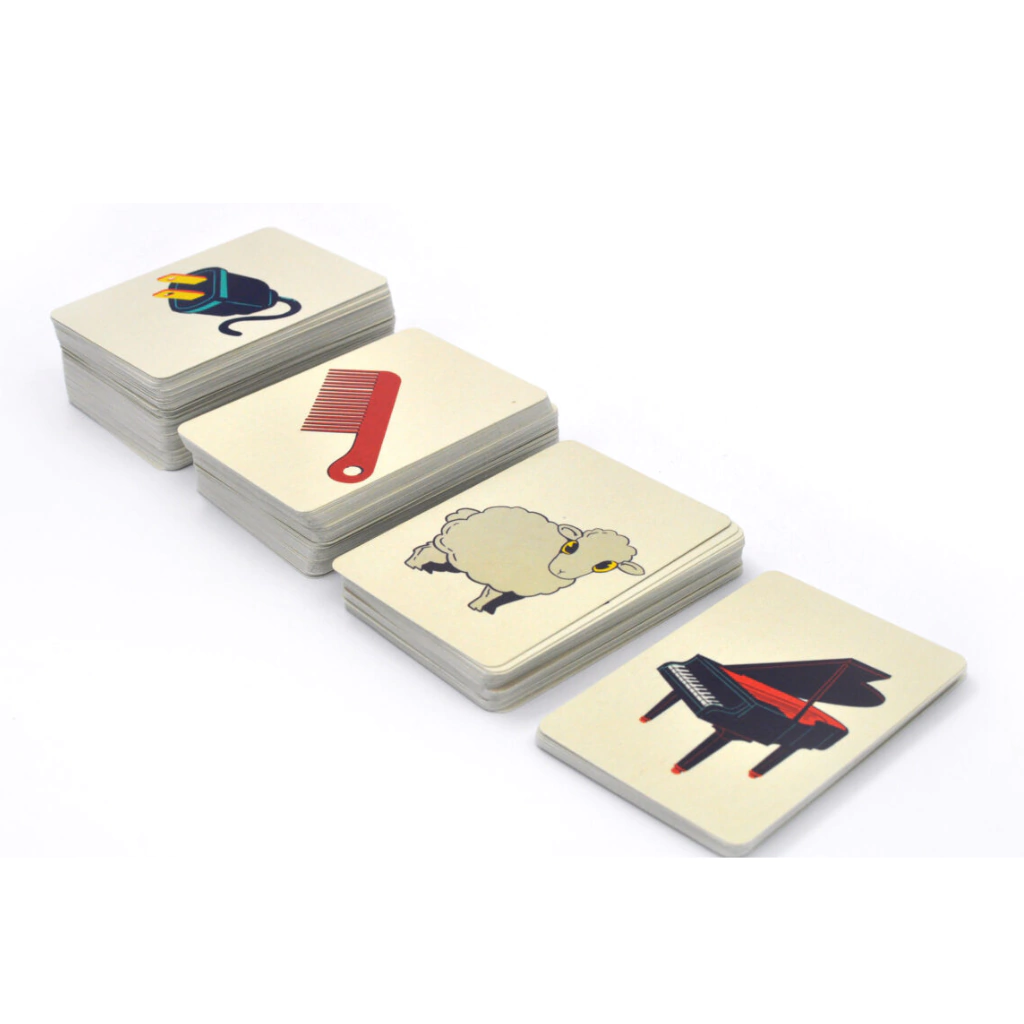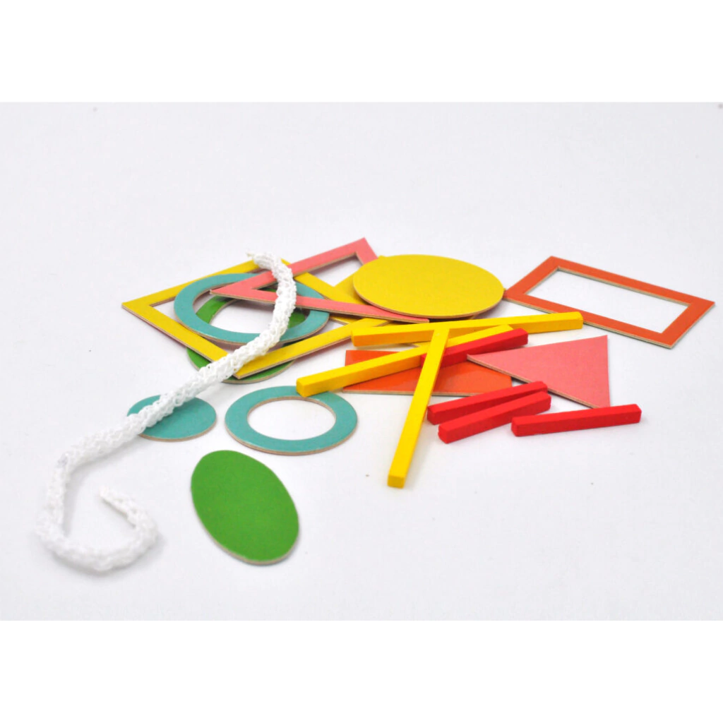Contenido:1 Tablero, 200 Tarjetas con dibujos, 10 Varillas, 1 Cuerda, Varias formas geometricas, Reglamento