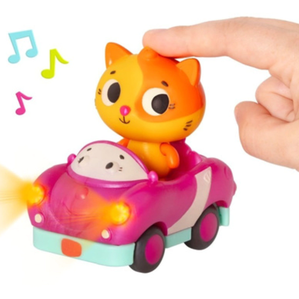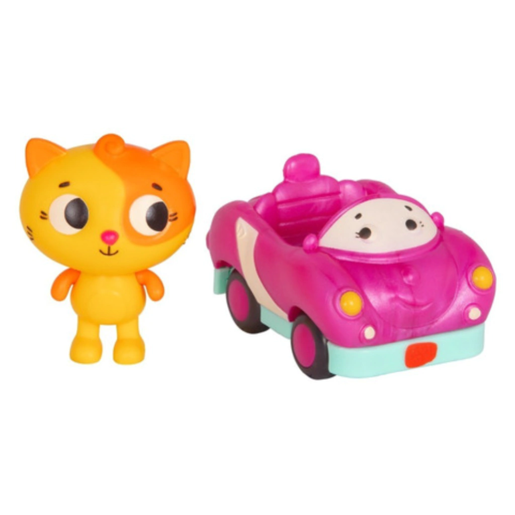 Subite al asiento del conductor y deja que tu imaginación tome el volante: deslízate por las calles de la ciudad,diríjite a una gira de conciertos, participa en una carrera de zoom o cambia de la carretera al cielo y navega alrededor del sol. Mientras navegas, presiona la cabeza de tu nuevo amigo para escucharlo cantar y ver cómo su auto se ilumina y reproduce un sonido enérgico. Si desea cambiarlo, es compatible con otros autos de la mágica Tierra de B. Simplemente sáquelo y colóquelo en el vehículo de cualquier personaje. Colecciónalos todos para mezclar, combinar, competir y montar.