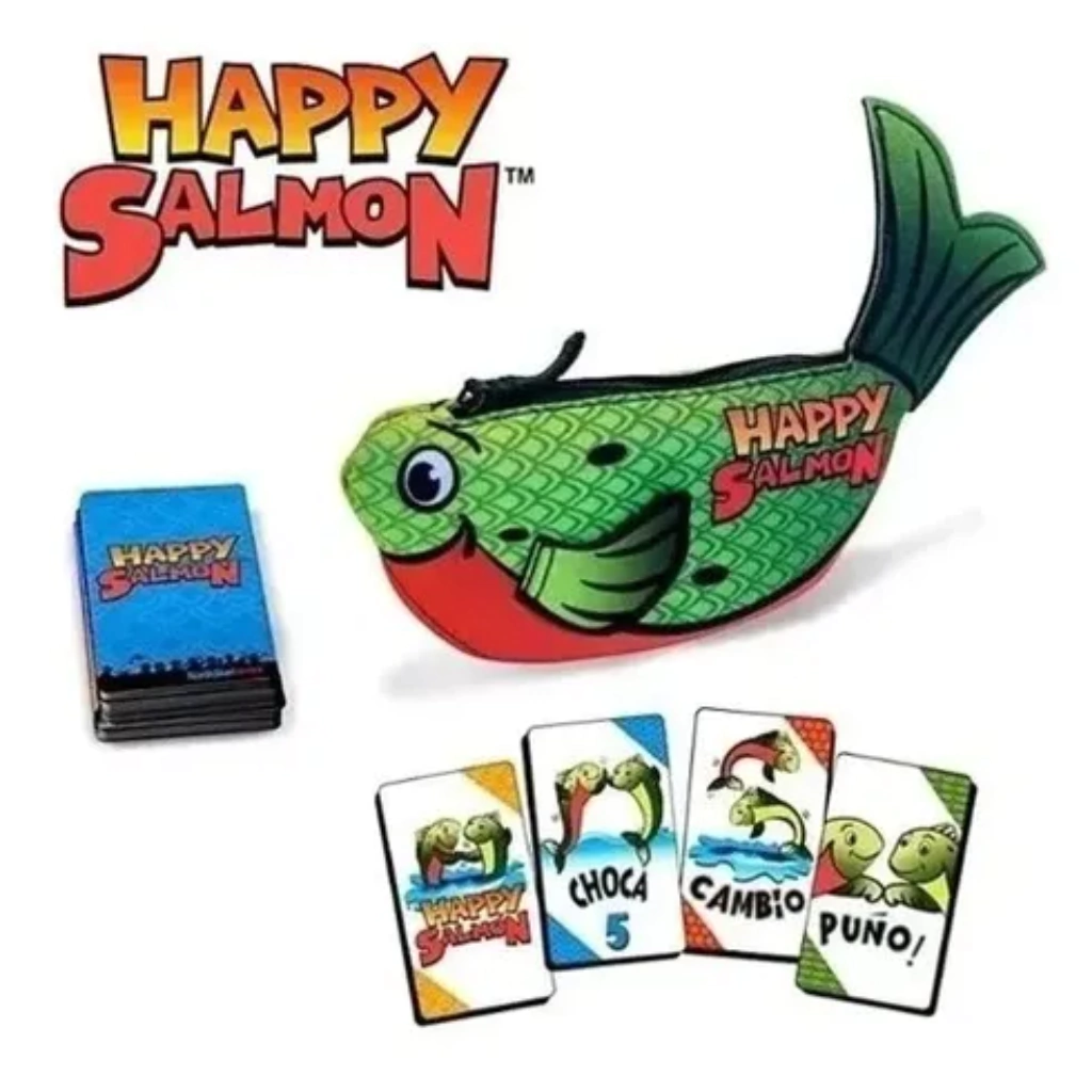 Contiene: 72 cartas, 1 libro de reglas, bolsa Happy Salmon, ¡ideal para viajar río arriba!