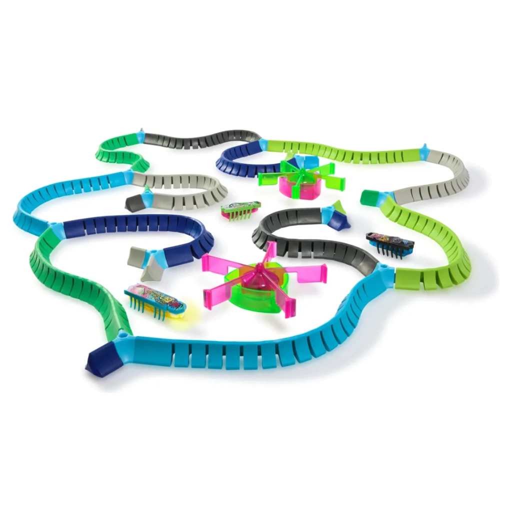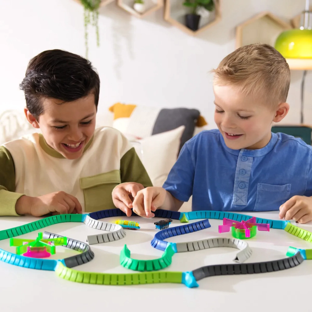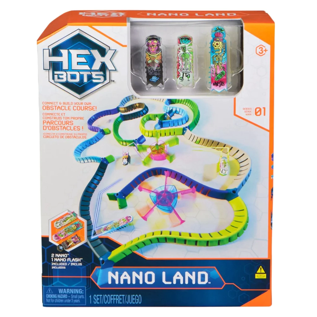 Descubre el poder de la tecnología de vibración mientras tus nano rebotan en las paredes del nuevo HEX BOTS nano Land. Este set de construcción combinable incluye el Nano más nuevo y rápido hasta la fecha: Flash Nano, 2 Nanos y paredes de gelatina flexibles para construir imaginativos parques de juegos, pistas de carreras y mucho más. Los pequeños pueden añadir imaginación con la decoración de arte callejero y añadir las 2 piezas que actúan como obstáculos independientes para un nivel extra de diversión. Estos mini juguetes robot cambiarán de dirección aleatoriamente, rebotarán contra objetos y explorarán pequeños rincones y grietas, ¡como insectos de verdad! Los nanobots HEX BOTS son el juguete sensorial perfecto para los pequeños, con divertidos diseños luminosos y un movimiento de arrastre similar al de los insectos para mantenerlos entretenidos. ¡Arma tu colección de nanos y crea tu propio parque de juegos con estos juguetes de aprendizaje y educación! ¡Añade pistas y obstáculos para crear un mundo completamente nuevo de HEX BOTS Nano Bots!