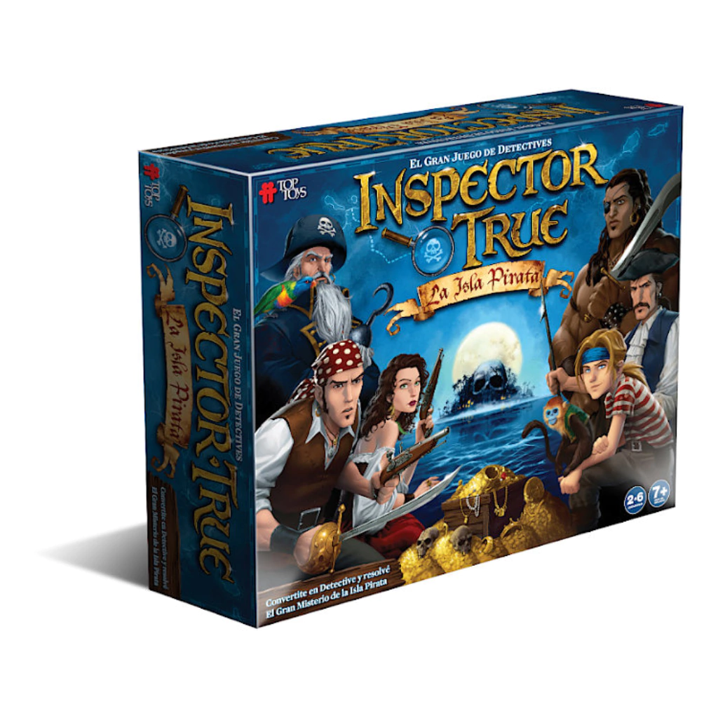 Contenido: 1 Tablero, 6 Fichas plasticas de colores, 6 Cartas pequeñas de armas, 6 Cartas grandes de armas, 6 Cartas grandes de sospechosos, 9 Cartas grandes de zonas de la isla, Block de inspector true, Sobre del crimen