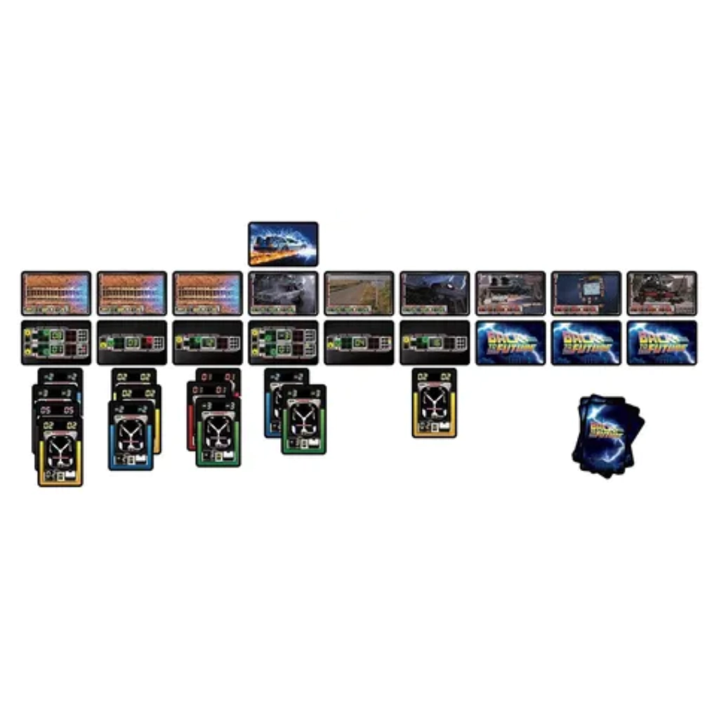 ¡Une fuerzas para llevar el Delorean a 88 MPH y regresar al futuro! Elimina todas las paradojas usando Flux Energy. El problema es que todos los jugadores juegan desde el futuro y no pueden comunicarse, ¡solo puedes enviar señales!Los jugadores deben trabajar juntos para eliminar las Paradojas colocando cartas de Flux Energy con diferentes valores para cumplir cada objetivo de Paradoja, eliminándolo del continuo temporal. Cada paradoja tiene un problema único que debe solucionarse. Decodifica la tarjeta de paradojas y descubre cómo resolverlas. Una vez que se cumplen los requisitos de la Paradoja, el Delorean puede moverse a ese espacio.Debes colocar una carta en tu turno. Puedes jugar una carta incluso si no ayuda a solucionar una Paradoja o si no puedes ir o eliges no ir, puedes revelar la siguiente Paradoja en la línea. ¡Sin embargo, esto provoca que aparezca otra Paradoja en el futuro.