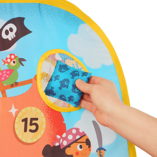 ¡Preparate para apuntar y ganar con esta Bolsa de Juegos! Este juego de lanzamiento de pufs viene con 3 lados divertidos para lanzar y 8 pufs que son fáciles de usar para manos pequeñas. ¡Lanza las bolsas para acumular 5, 10, 15 o 20 puntos en un barco pirata, gana más puntos en el mar o juega un juego de Ta Te Ti! Los pequeños pueden jugar fácilmente a este divertido juego en casa, en el parque o en la playa. Y cuando termine el tiempo de juego, todo lo que necesita hacer es doblarlo y llevarlo en la práctica bolsa: ¡es fácilmente plegable! Este clásico juego de fiesta no solo mantiene a los niños activos, sino que también mejora sus habilidades motoras.
