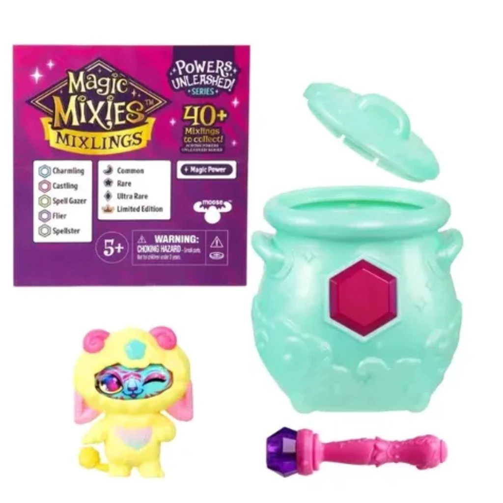 Descubre las nuevas mezclas de Magic Mixies con nuevos poderes mágicos y el nuevo color de caldero en la serie Powers Unleashed. Tu varita mágica revela tu poder mágico de Mixlings. ¿Encontrarás la varita que activa tu gema de Castlings, Spell Gazers y Fliers? ¿O encontrarás la varita de pipeta que desata el poder de tus Charmlings? También hay una varita que brilla en la oscuridad que desbloquea la magia de tus hechizos. Canaliza tu magia interior para crear tu propia Mixling! Frota la gema en el caldero para averiguar si tu mezcla es común, rara, ultra rara o una edición limitada, luego di las palabras mágicas 'Magicus Mixus' para descubrir mágicamente quién está dentro del caldero ¿Qué poder mágico tiene tu Mixling? ¿Son un Spell Gazer con ojos encantadores? ¿Un volador con alas mágicas que aparecen? ¿Un enroque puede liberar su poder en sus palmas? ¡Un encantador que puede revelar su encanto mágico dentro o un hechizo que ilumina la noche mientras se hacen brillantes!¿Encontrarás la edición limitada Lucky Rainbow Light Mixling, Zindle? ¡Su poder es extra brillante con su gema mágica de cambio de color!