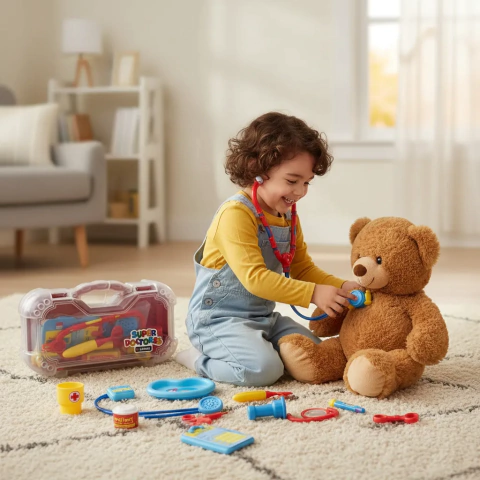 Clásico juego de rol infantil en un práctico maletín resistente, ideal para que los chicos exploren el mundo de la medicina mientras desarrollan la creatividad y el juego simbólico.