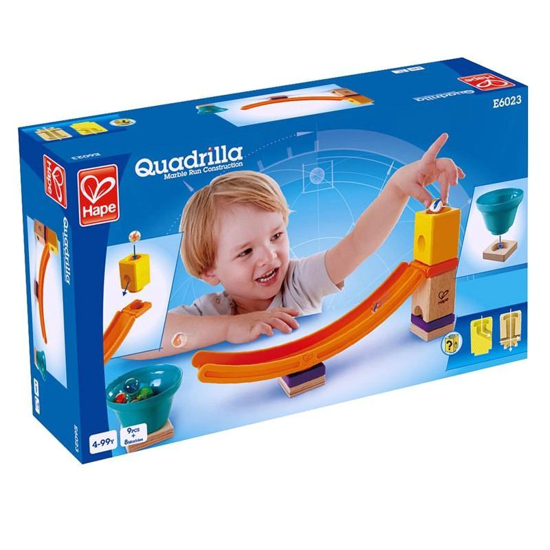 Deja que tus canicas vuelen mientras salen disparadas por este salto a gran velocidad hasta el diseño Quadrilla. Recibirás un repicar de recompensa cada vez que una de ellas aterrice en el embudo de la campanilla.