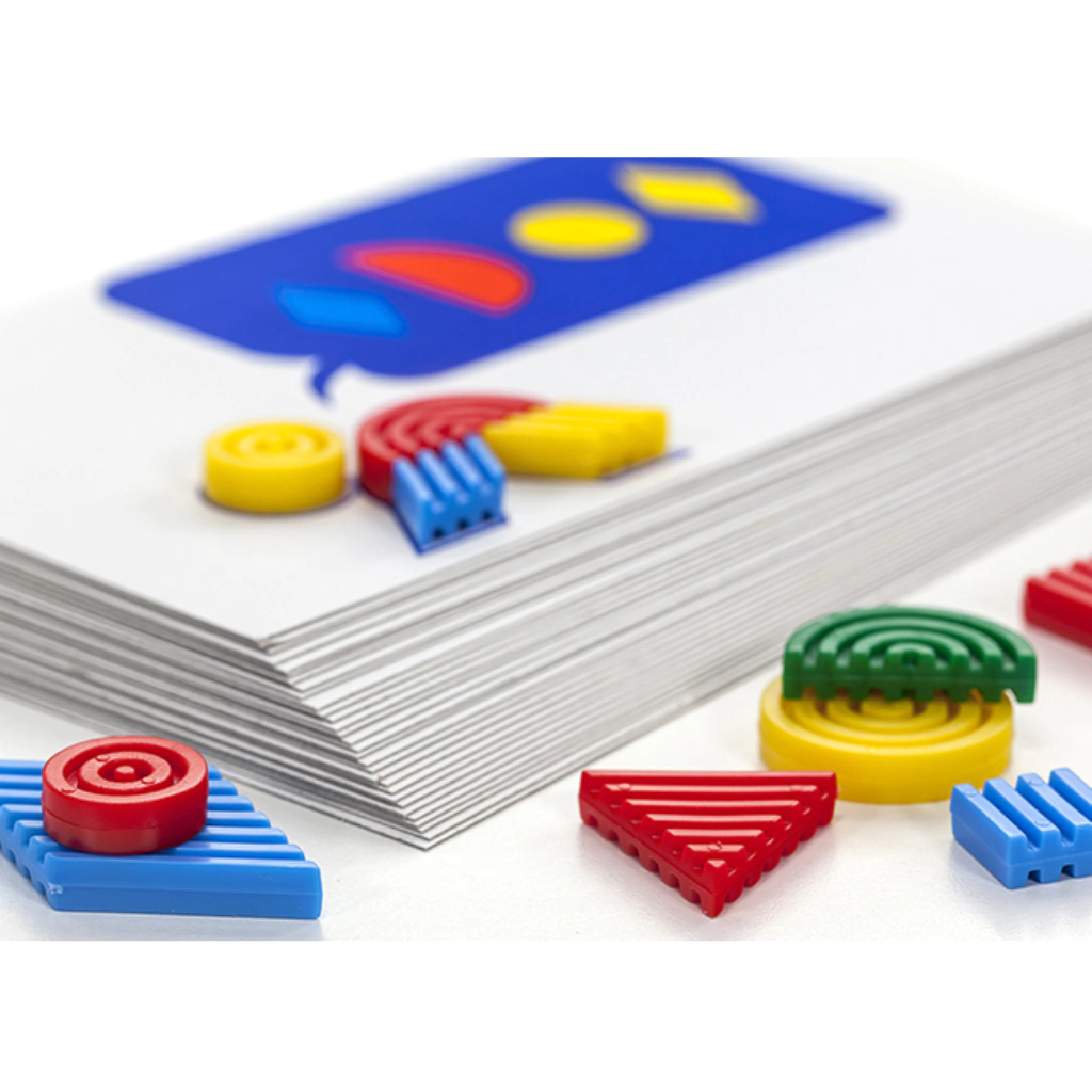 Contiene: 32 Fichas plasticas, 30 Tarjetas con figuras