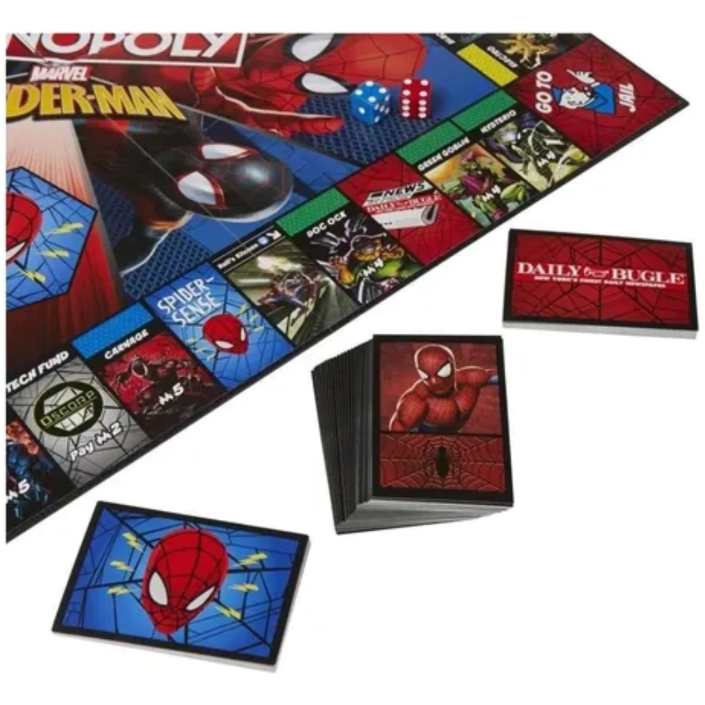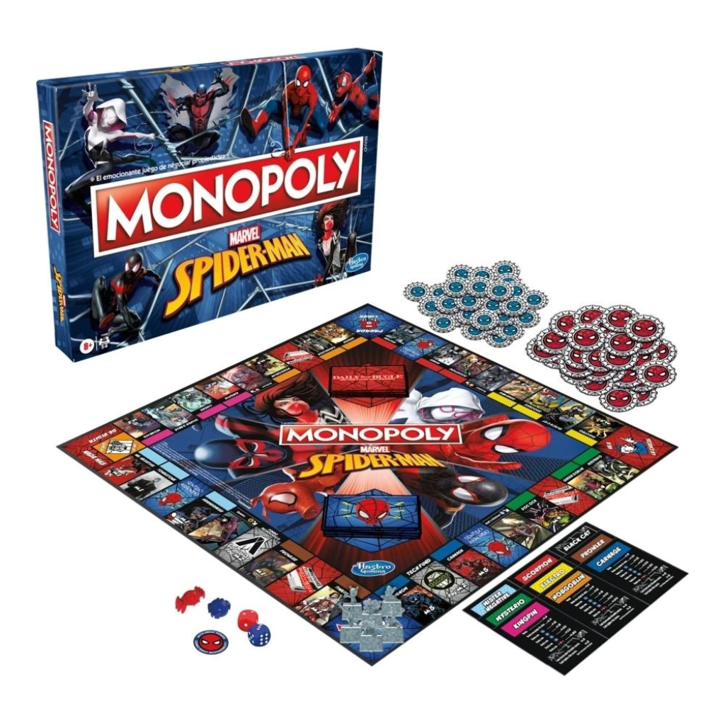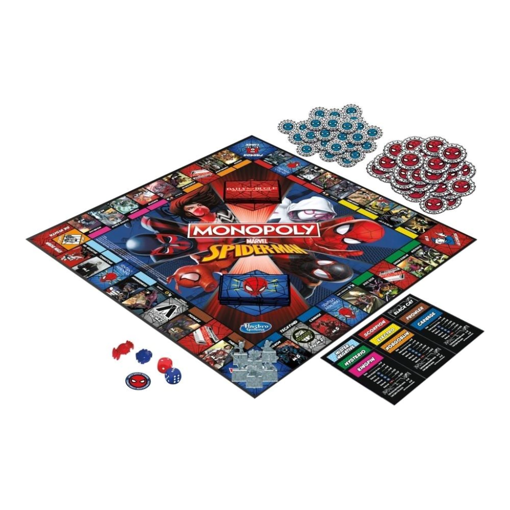 Incluye: 1 Tablero, 6 Tokens, 6 Tarjetas de poder arácnido, 24 Tarjetas de supervillano, 15 Tarjetas de Daily Bungle, 15 Tarjetas de sentido arácnido, 32 Rastreadores arácnidos azules, 12 Spider-Bots rojos, 1 Símbolo de cartón de Gran Responsabilidad, 92 Monedas telarañas de cartón, 2 Dados e Instrucciones