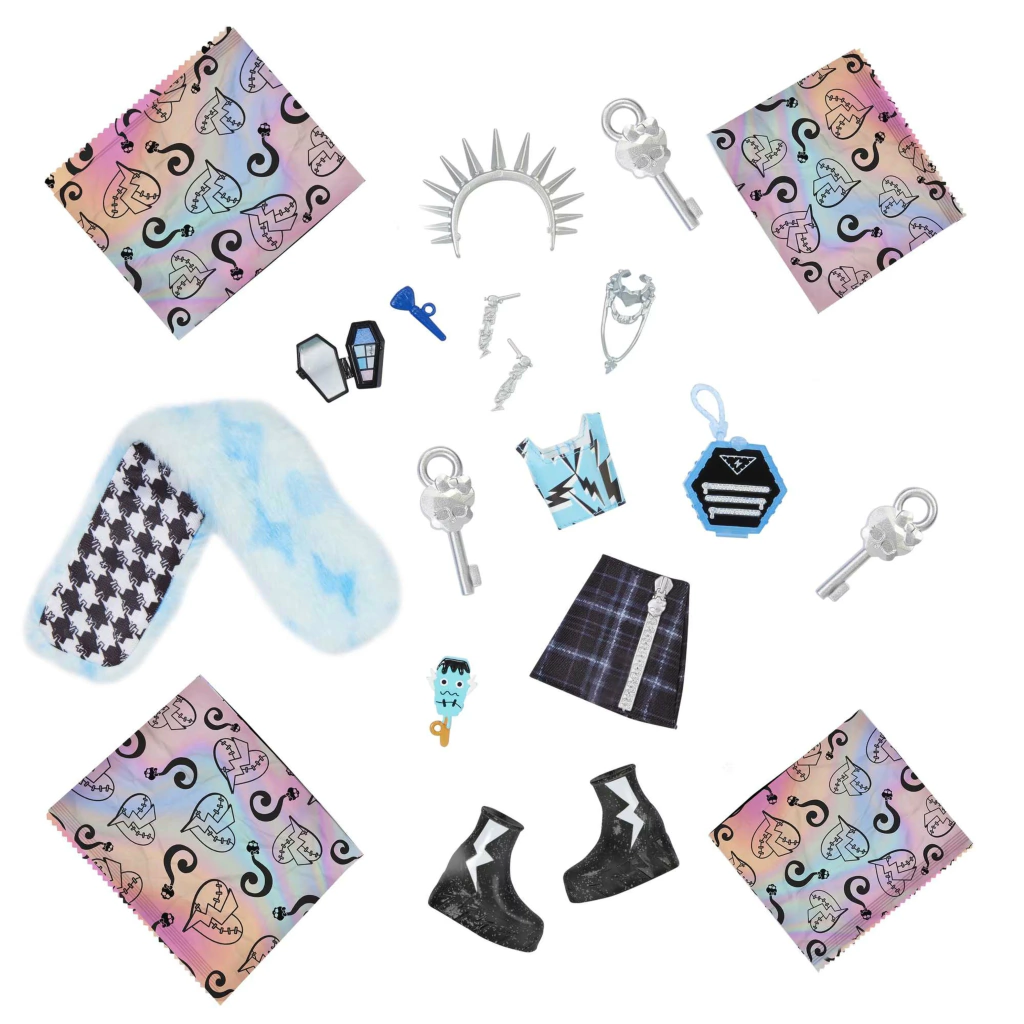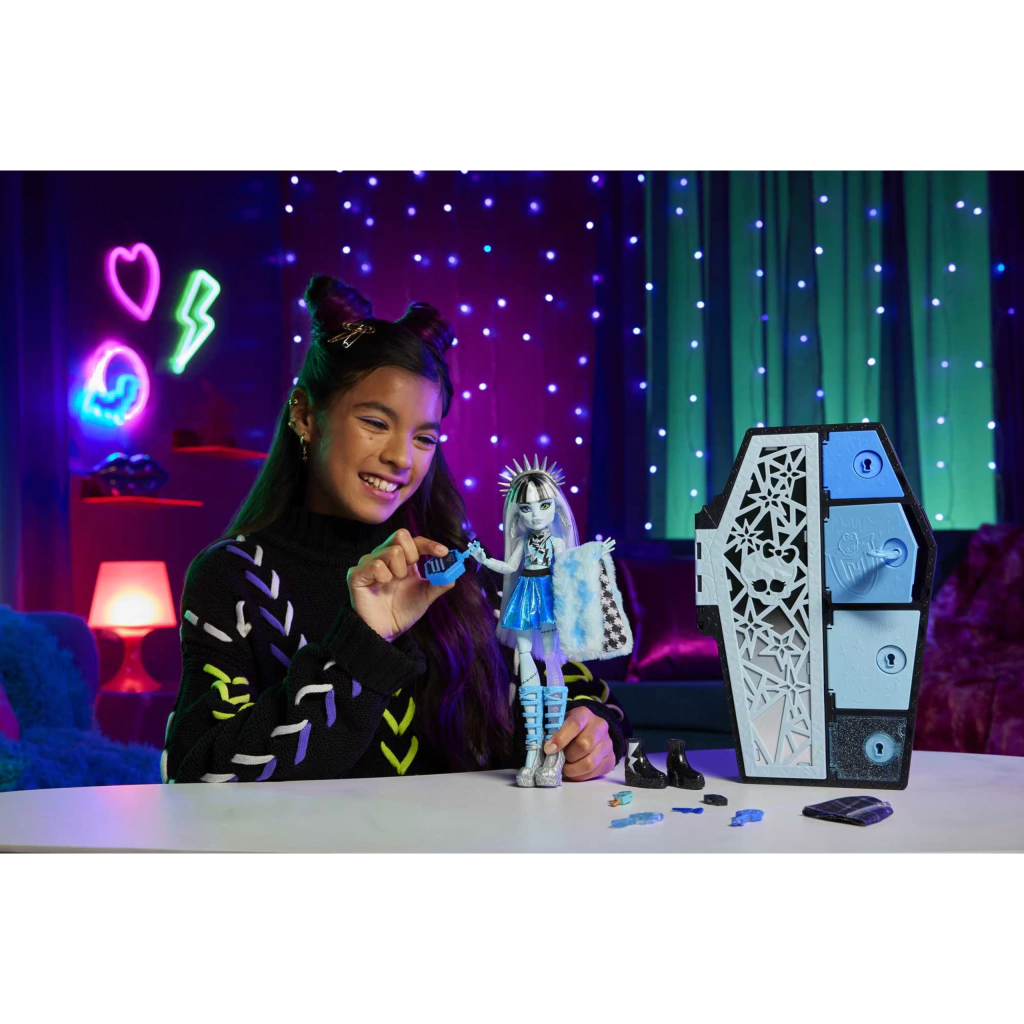 Skulltimate Secrets regresa con la edición Fearidescent. Estas muñecas de Monster High ofrecen una experiencia espectracular al sacarlas de la caja con más de 19 sorpresas que incluyen ropa, accesorios y piezas temáticas. La tecnología Color Reveal y la revelación paso a paso añaden magia y misterio, mientras que la taquilla en forma de ataúd es perfecta para contar historias y guardar cosas. Se venden por separado y están sujetas a disponibilidad. La muñeca está totalmente articulada. La muñeca no puede tenerse en pie por sí sola. Los colores y la decoración pueden variar.