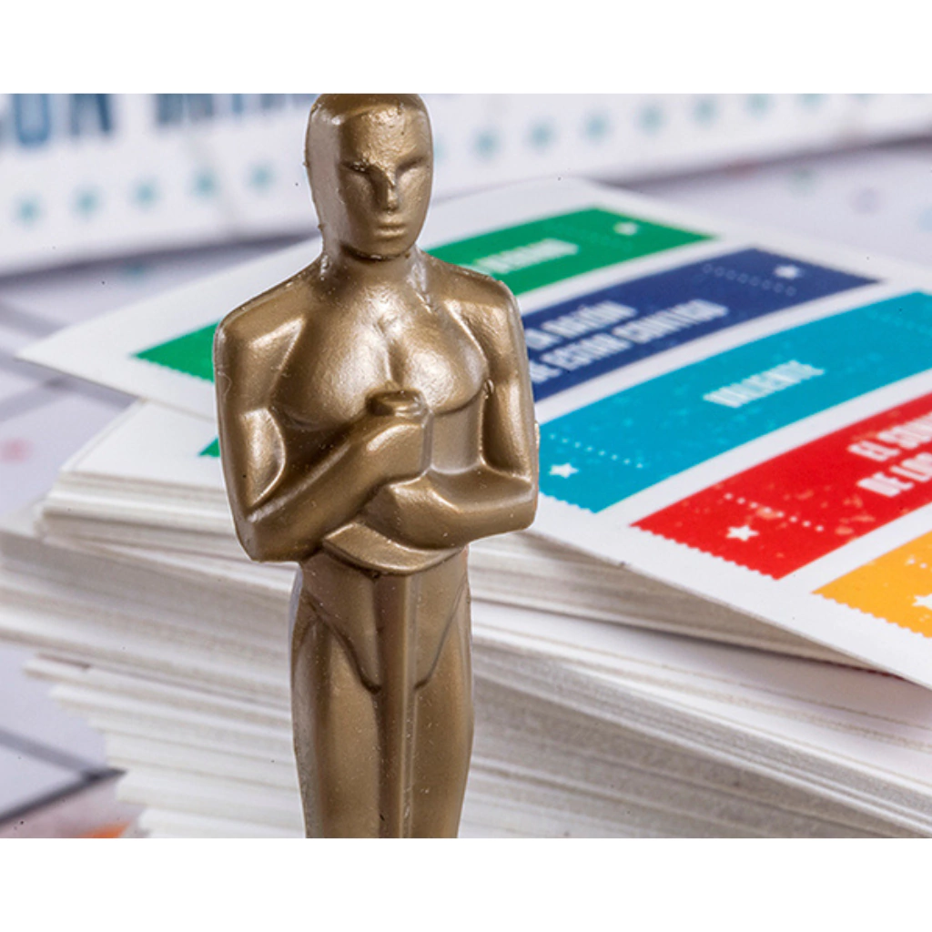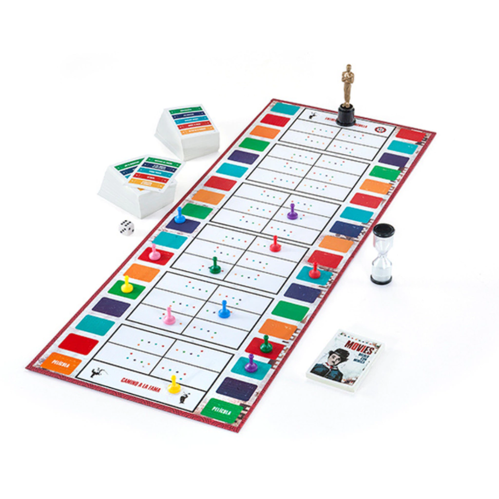 Contenido: 1 tablero, 12 peones plásticos, 1 dado, 256 tarjetas (con 1280 títulos de películas), 1 reloj de arena, 1 Oscar, 1 reglamento