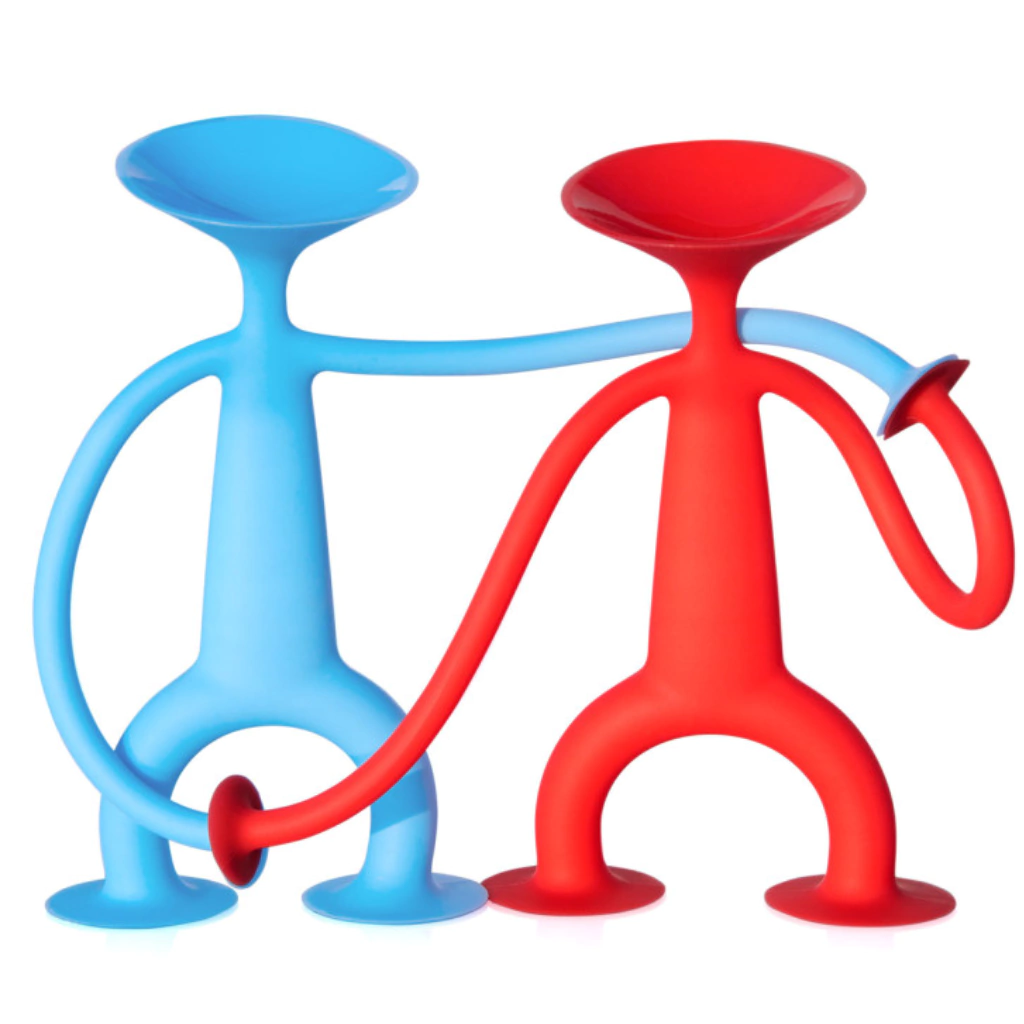 Una figura de juguete irresistiblemente táctil y maravillosamente expresiva. Con cabeza, manos y pies con ventosas, y brazos largos y elásticos, se adhiere a toda superficie lisa. Hechos de silicona de alta calidad. Seguro y duradero. Apto lavavajillas.
