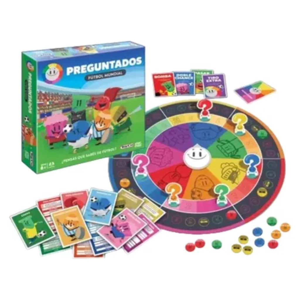 Incluye:1 tablero, 6 peones, 36 fichas de categorías, 24 Comodines, 180 cartas con 360 preguntas.