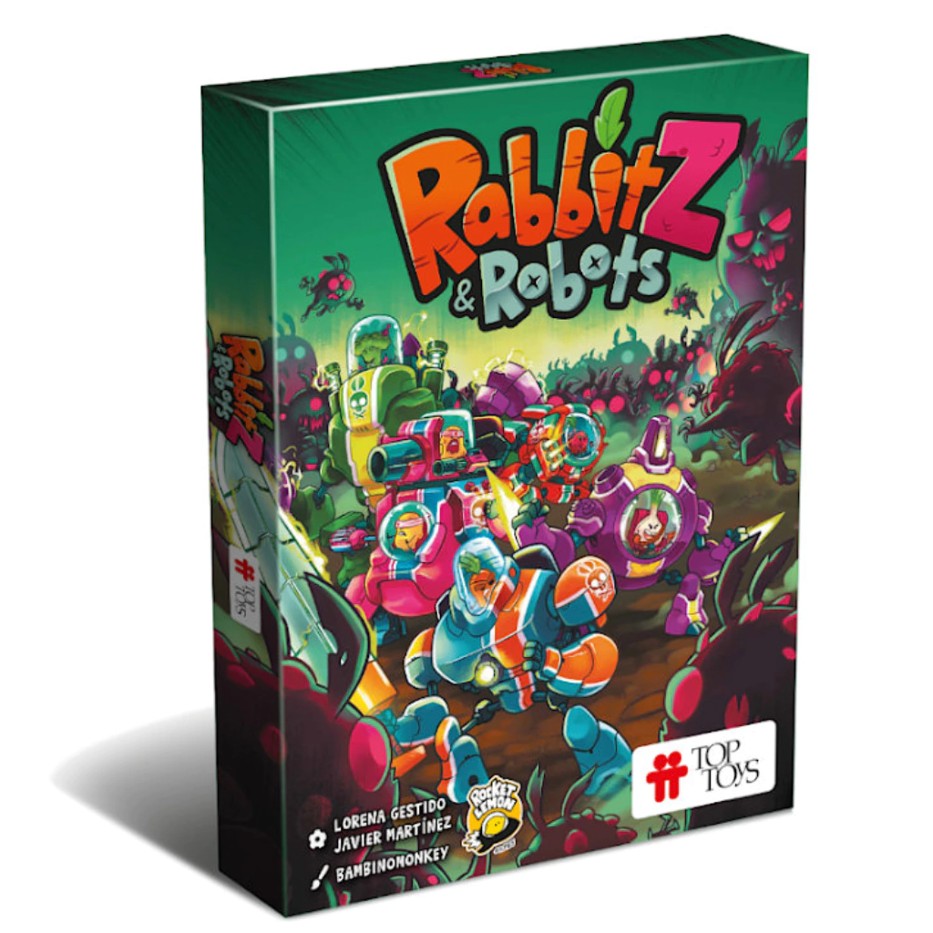 Rabbitz and Robots es un juego de cartas donde pilotarás un robot con el que conseguirás poderosas armas y defenderás la huerta de la invasión de los RabbitZ. Con Rabbitz and Robots tendrás un juego de cartas de tipo defensa de la torre, en el que los jugadores se convertirán en los guardianes de la Huerta, un grupo de valientes hortalizas que pilotan robots de combate y defienden la Huerta de la invasión de los rabbitZ. Comenzando con el jugador que tiene el valor RabbitZ más alto en su camino, el juego se jugará por turnos y en el sentido de las agujas del reloj. El turno de cada jugador se divide en dos fases: En la fase 1: toma la carta superior del mazo de Madriguera y colócala al comienzo de tu camino (al lado del mazo de Madriguera) con el lado de RabbitZ hacia arriba. Si ya hay otros RabbitZ en su camino, se moverán en la dirección de su robot para dejar espacio para el nuevo RabbitZ. Los caminos tienen un máximo de tres espacios, esto quiere decir que si ya hay tres RabbitZ en un camino y entra un cuarto, empujará a los demás y el RabbitZ más cercano al Robot se colará en el Jardín del jugador, contando como negativo. puntuación al final del juego. En la fase 2: Elige una acción entre: Súper Ataque, Cargar Robot, Usar armas o Pasar turno. El juego termina cuando termina el mazo de Madriguera y no quedan RabbitZ frente a los jugadores. Gana el jugador con la menor cantidad de puntos negativos (valor RabbitZ) en su huerto.
