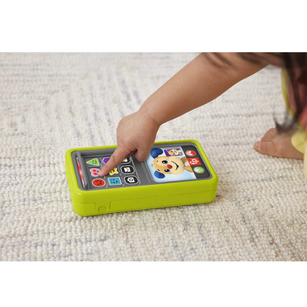 Desliza hacia arriba para divertirte aprendiendo con el juguete de Teléfono Inteligente 2 en 1 Desliza para Aprender Ríe y Aprende de Fisher Price. Este interactivo teléfono de juguete se ve real y cuenta con los amigos Ríe y Aprende de tu bebé, Perrito y Hermanita, además de dos modos de aprendizaje con botones de "aplicación" y números que se pueden presionar para activar luces, canciones y sonidos. A medida que los pequeños presionan, deslizan y activan las actividades en la simulación de teléfono, ejercitarán adecuadamente sus habilidades de motricidad fina, mientras las canciones y las frases educativas les presentan los números y les enseñan a contar, las formas, los colores y mucho más. Usa el botón del mundo para seleccionar un idioma: español, portugués, inglés..