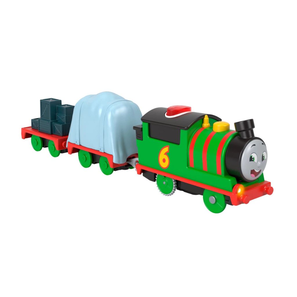 El tren de juguete Interactivo Percy de Thomas & Friends da vida al mejor amigo de Thomas esta locomotora de pilas emite sonidos y frases originales de la caricatura, y viene con 2 vagones de carga y 2 piezas de juego para que los niños aceleren sus aprendizajes de una manera divertida.